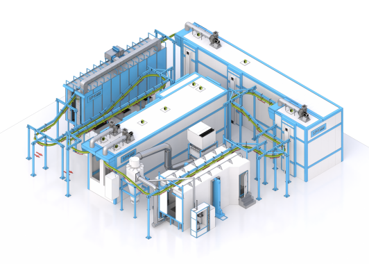 Комплекс оборудования для порошковой окраски с конвейерной системой