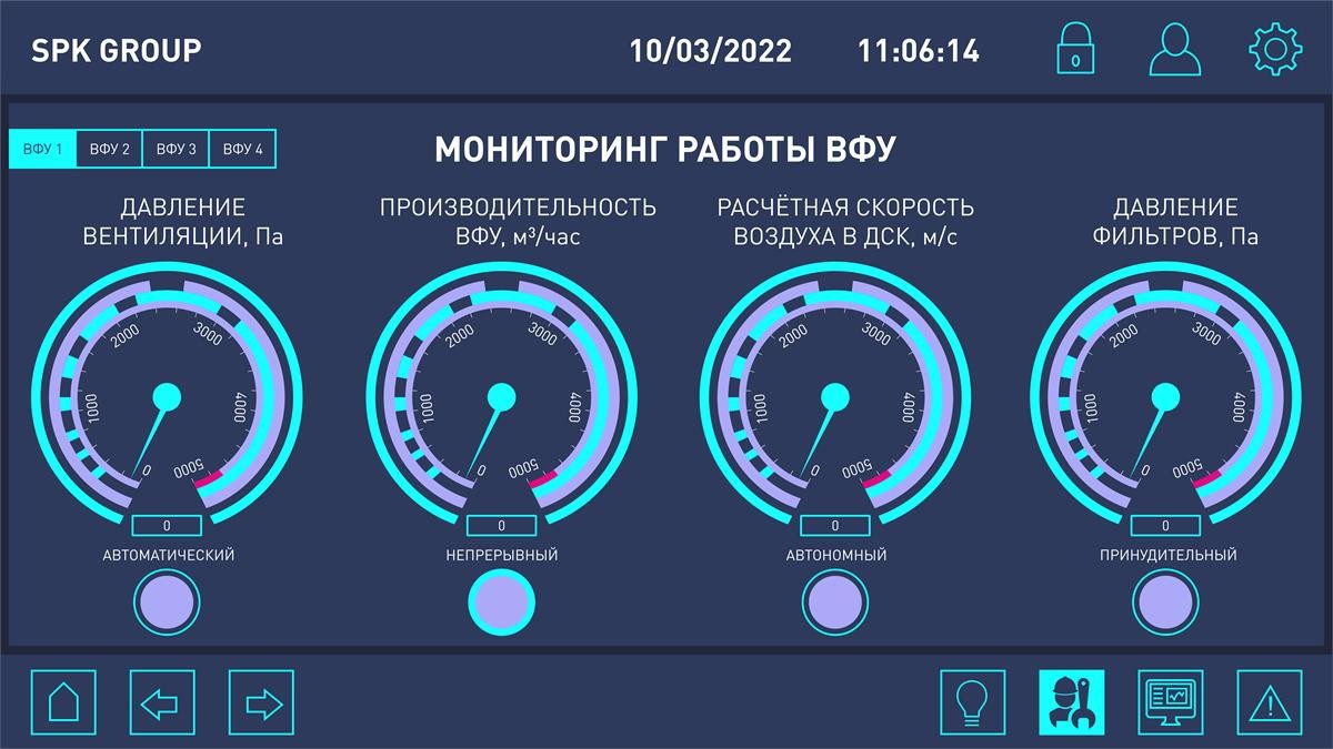 - контроль загрязнения и продувкипатронных фильтров, располагающихся в вентиляционных установках.