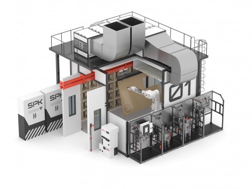 Оборудование для подготовки, подачи, смешивания и нанесения лакокрасочных материалов располагается рядом с камерой и поставляется модульными блоками, предварительно собранными на площадке SPK GROUP с использованием техники GRACO (США) и Carlisle-Binks (Англия). Управление каждой подачей материала интегрируется с управляющей системой КПО и роботом.