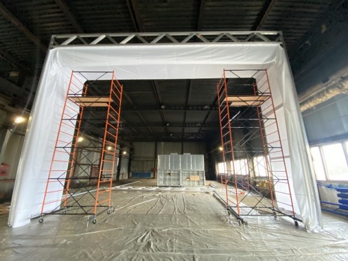 Складная покрасочная камера в тупиковом исполнении SPK предназначается для подготовки изделий к окраске, а также нанесению на них ЛКП. Камера обеспечивает равномерно направленный поток воздуха, который берется из помещения ангара, где размещается камера. Поток воздуха направлен по диагонали по длине камеры. В камере сухой способ фильтрации воздуха от элементов краски. Таким образом, обеспечивается наилучшее нанесение лакокрасочного материала на подготовленное изделие.